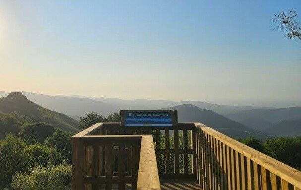 Este mirador de reciente creación se sitúa junto a un área recreativa con amplio aparcamiento. Cuenta con una pasarela de madera y un panel interpretativo que ayuda a identificar el paisaje visible desde el punto panorámico, ofreciendo una excelente perspectiva del entorno rural y montañoso.